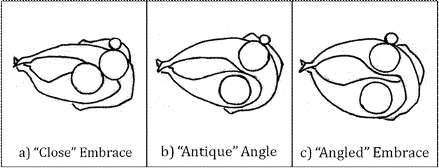 embrace is that the woman's body and feet are not parallel with the man's. This means that at least one of the partners